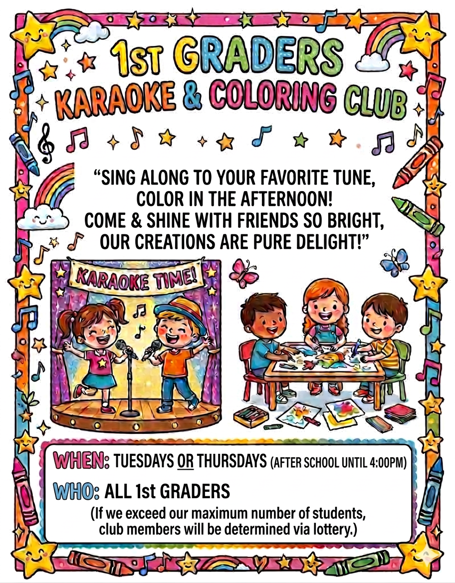 Karaoke & Coloring Club for 1st graders